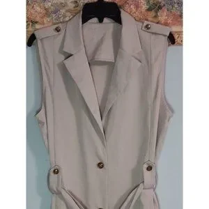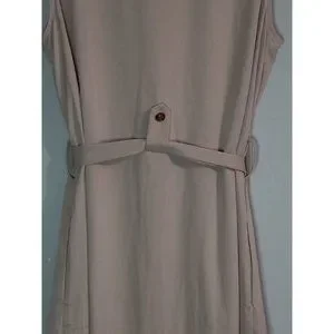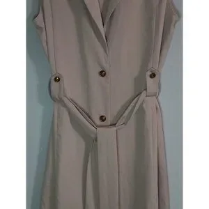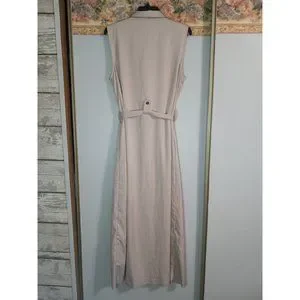 Elegant sleeveless maxi dress. Features button details and a matching belt. Perfect for any occasion.