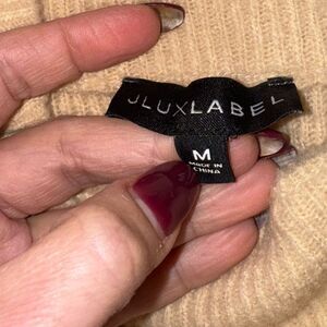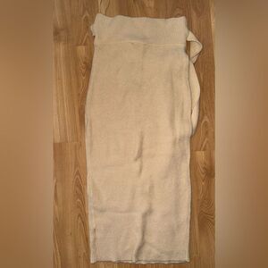Ties at the waist, definitely a large amount of stretch to fit a large as well