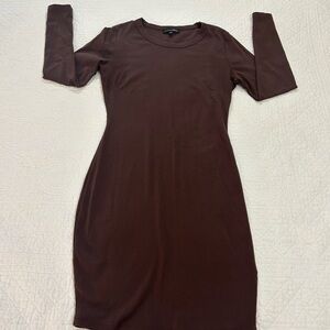 JLUXLABEL Brown Ribbed Bodycon Long Sleeve Dress
