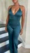 Chic and stylish jumpsuit with a deep V-neck. Features elegant straps and a sleek silhouette. Ideal for any occasion.