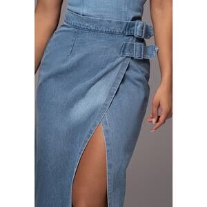 JLUXLABEL Gisele Denim Slit Skirt - XL - Medium Wash