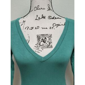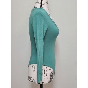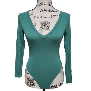 JLUXLABEL Long Sleeve Deep V-Neck Green Thong Bodysuit SIZE S