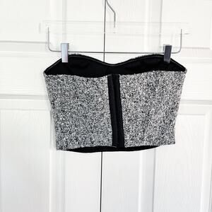 Femme with a touch of sophistication in our Lt. Grey All You Need Tweed Corset. This strapless corset features a sweetheart neckline with padded underwired cups, boning throughout for structure support, and grip silicone at the bust for the secure hold. hook and eye closures. Fastened with hook and eye closures.