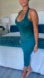 Chic teal midi dress with halter neckline. Perfect for elegant outings.