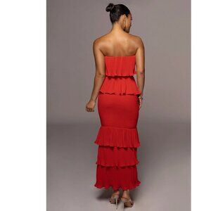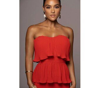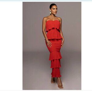 JLUXLABEL WOMEN'S CASA BLANCA RED RUFFLE DRESS SIZE LARGE