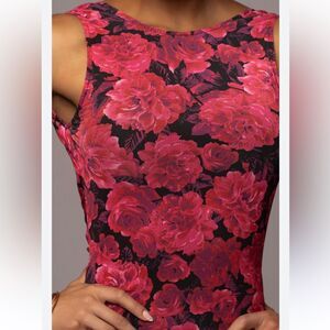 Size M. New with tags. Our Pink Floral Front And Center Maxi Dress gives Summer prints new meaning. One of our favorite dresses has been redesigned in a dreamy floral print adding a touch of nature to your wardrobe. Crafted from soft double lined fabric, this stretchy maxi dress features a fitted silhouette with classic neckline and an open back. Flattering ruching at the lower back heightens the allure of this design. Stretchy. Materials: 90% Nylon 10% Spandex