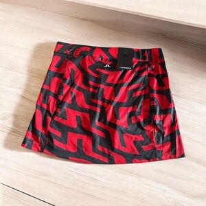 J.Lindeberg Amelie Mid Print Golf Skirt Red Black Size L NWT
