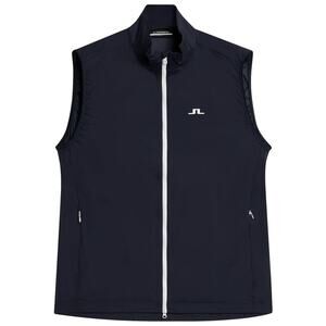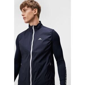 Stylish sleeveless jacket by J.Lindeberg. Features a sleek black design with a front zipper. Perfect for layering.
