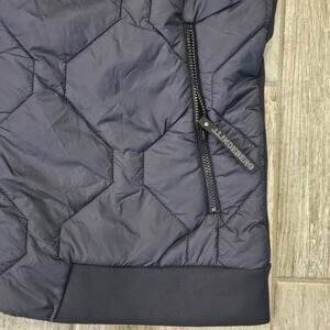 Description: J.Lindeberg diamond quilted vest in navy, men’s size L. Features lightweight insulated design, full zip front, zippered pockets, and ribbed hem for a sleek athletic fit. Versatile layering piece ideal for golf, casual wear, or transitional weather. Premium quality construction with modern Scandinavian style. Measurements are included in the photos.