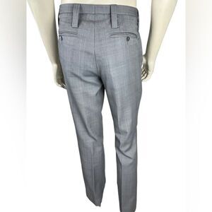 These wool blend flat front dress pants by J. Lindeberg are subtle plaid in gray, light blue, black and tan. They feature slip hip pockets and rear slip pockets. The size 50 measures as follows: