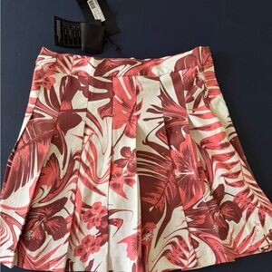 Stylish mini skirt with vibrant floral pattern. Features red and white colors. Perfect for a chic look. NWT