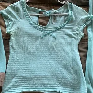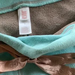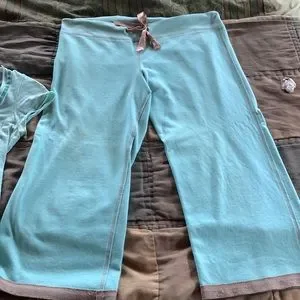 I bought this cute set at Macys in 2006. I haven’t worn it much. Pants are medium, tops are small. The pants are also cropped.