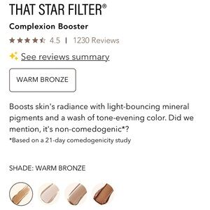 Boosts skin's radiance with light-bouncing mineral pigments and a wash of tone-evening color. Did we mention, it's non-comedogenic*?