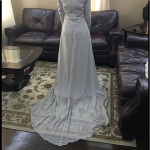 This dress is absolutely gorgeous and pure elegance!!! Perfect for any special formal event! This dress is two pieces and pictures do no justice for this dress.... can be worn with the long sleeve dress it comes with or changed out with any matching color dress of choice under( ex. Silver Slip Dress)