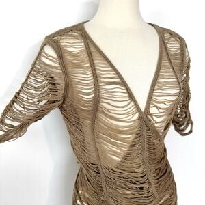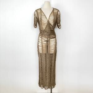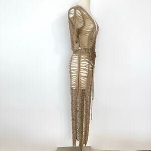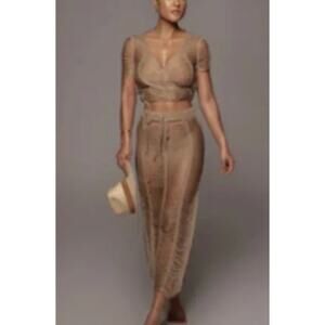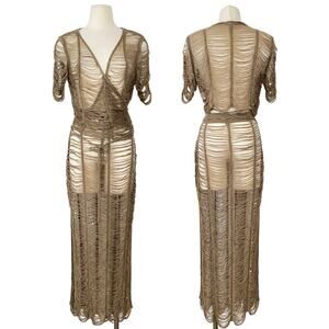 JLux Label Nia Distressed Crochet Set Knit 2-Piece Maxi Skirt and Top Beige L