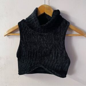 Black, sleeveless, textured crop top with a turtleneck and a wired under bust. In excellent condition! Perfect for a night out! Approximate measurements shown in photos! Feel free to ask questions or make an offer!