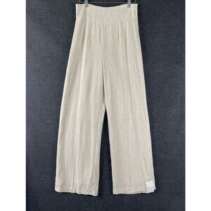 JLuxlabel Linen Blend Pants Womens Large Beige Trouser Wide Leg High Rise NEW