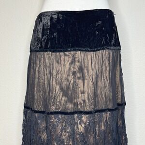 JM ATELIER Silk Blend Tiered Maxi Skirt MED Sheer Black Whimsygoth Fairy Goth
