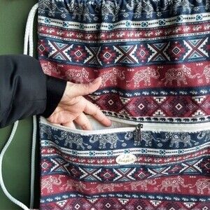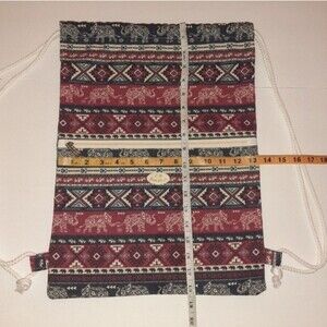 J.M. Bangkok Canvas Backpack Drawstring Gym Bag Ethnic Bohemian w/zip Pocket
