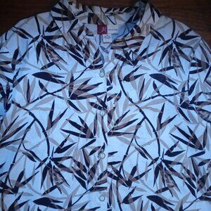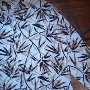 JM COLLECTION 100% linen bamboo print button down shirt (sz18)