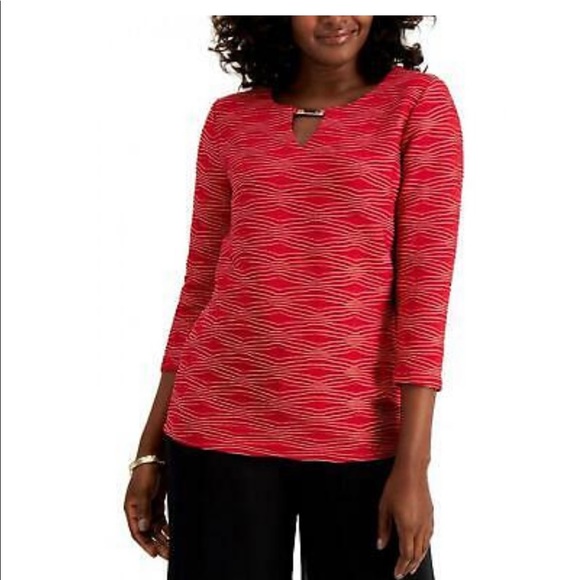 NWT JM Collection Womens Jacquard Metallic Hardware Keyhole Knit Top 100110194MS