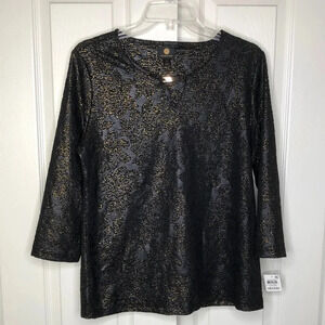 Gorgeous holiday top embossed floral design with gold thread accents. Retail $49.
