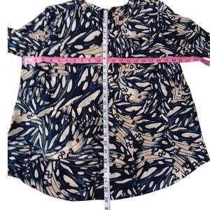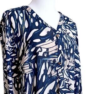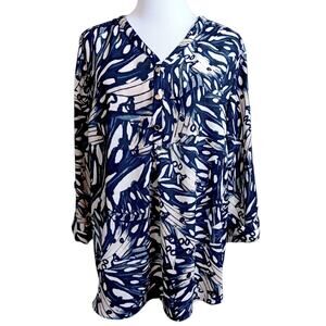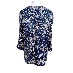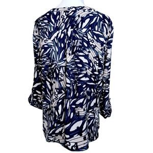JM COLLECTION Blouse Top Petite XL 3/4 Sleeves Career Office Flowy V-Neck Blue