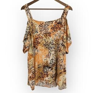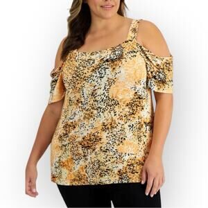 JM COLLECTION NWT Printed Short Sleeve Cold Shoulder Top Plus Size 1X Casual