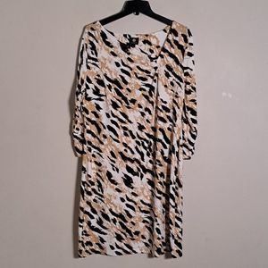 JM COLLECTION Printed Pullover Shift Dress in Eggshell Combo Large