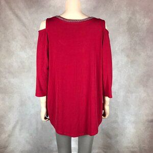 JM COLLECTION Red Cold-Shoulder Studded Knit Top NEW 0X
