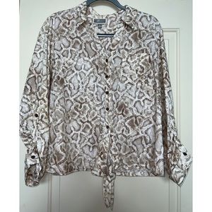 JM Collection snake print linen tie waist blouse. Preloved with no known rips or stains.