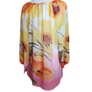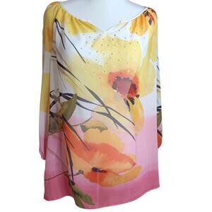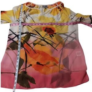 JM COLLECTION Sheer Blouse Top M Floral Bright Colorful Artsy Travel Vacation