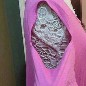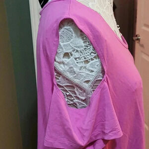 JM COLLECTION TOP. Cold shoulder shoet sleeve top. The color is peony bloom. NWT NEVER WORN