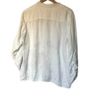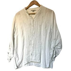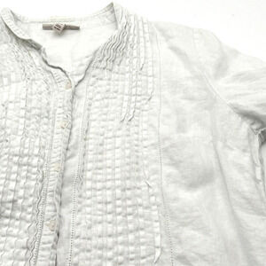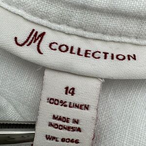 JM COLLECTION Women's 14 White 100% Linen Ruffle Button Up Shirt Roll Tab Sleeve