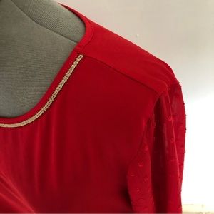 JM COLLECTION Women’s Red Long Sleeve Bellbottom Sleeve Blouse Size M