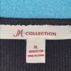 JM COLLECTION pearl embellished ribbed tank top black stretchy soft NEW size XL