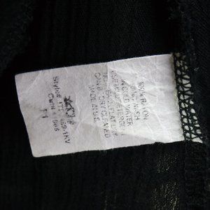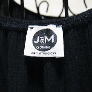 Elevate your wardrobe with this stunning black tunic blouse from J&M. The off-the-shoulder neckline adds a touch of elegance, making it perfect for any occasion. Crafted from soft and lightweight rayon material, this blouse boasts a flowy and loose fit that drapes beautifully, creating a flattering silhouette. Complete with delicate crochet trim, this blouse is a wardrobe staple for any fashion-forward person. The black color adds a touch of sophistication and versatility, making it easy to pair with any bottom of your choice. Add this J&M tunic blouse to your collection today and make a statement without talking about the condition!