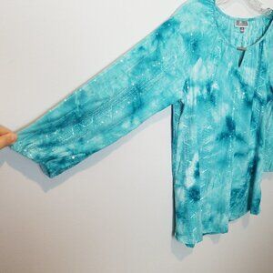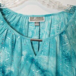JM Colelction Tuquoise Sequin Tie Dye Blouse Small