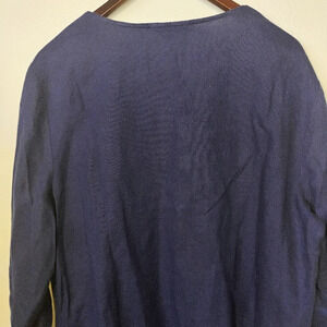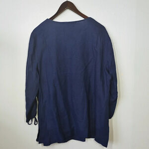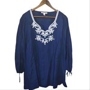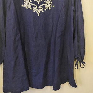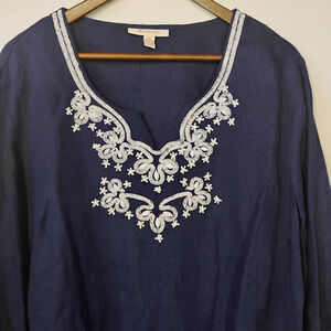 JM Collection 100% Linen Beaded Embroidered Tunic Top Navy Blue Plus Size 18