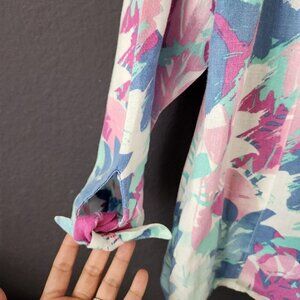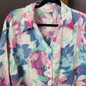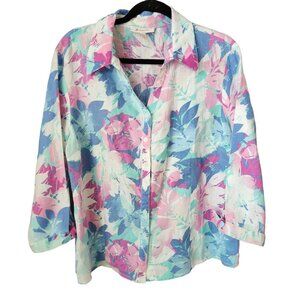 JM Collection 100% Linen Blouse Shirt Plus size 14 Floral 3/4 Sleeve Pastel