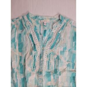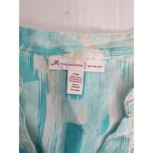 JM Collection 100% Linen Blouse Women’s SZ 22W Button Up Lagenlook Coastal