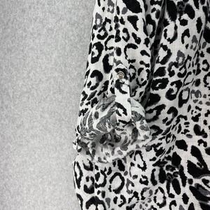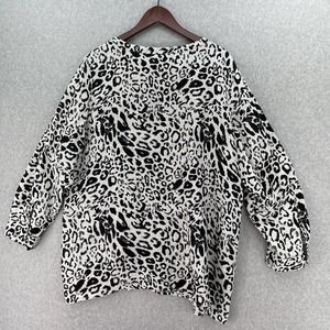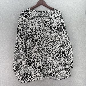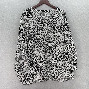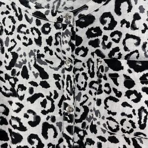 JM Collection 100% Linen Blouse Womens Size 18W Animal Print Tab Sleeves Pocket