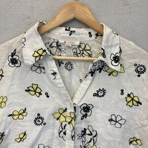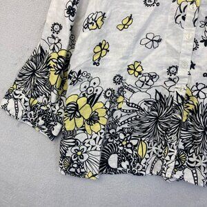 JM Collection 100% Linen Button Up Blouse 18 White Floral A-Line Western Summer