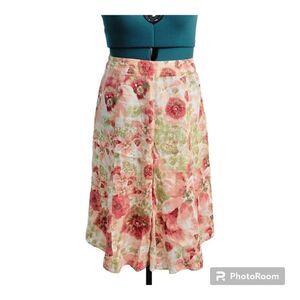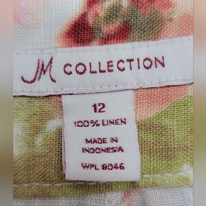 JM Collection 100% Linen Floral Skirt Side Zipper Knee Length Lagenlook Size 12