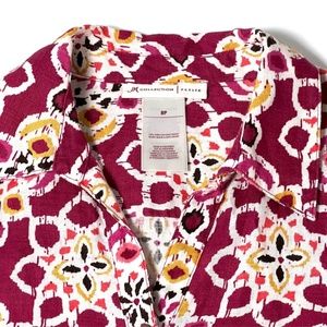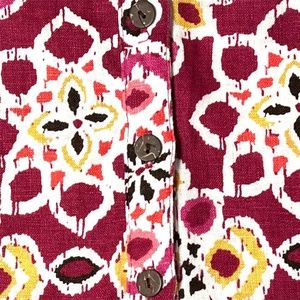 JM Collection 100% Linen Shirt sz 8P Vibrant Batik Print Summer Colorful Breezy