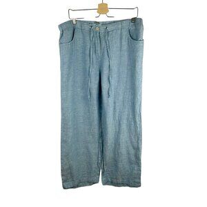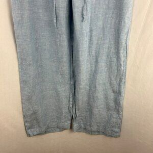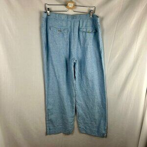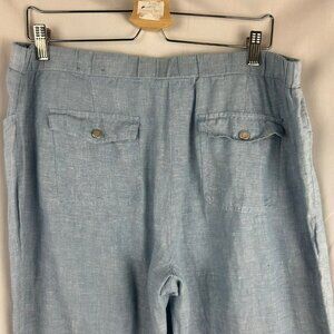 JM Collection 100% Linen Wide Leg Pants Women 16 Short Petite Blue Beach Boho