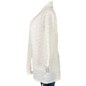 JM Collection +2X Eggshell Mesh Textured Weave Open Front 3/4 Sleeve Jacket