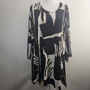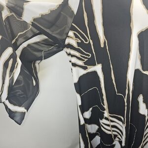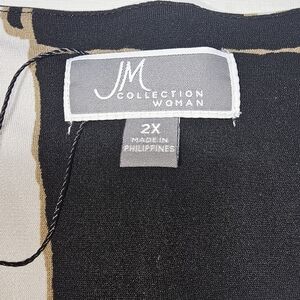 JM Collection 2X black and white with tan blouse. Sheer sleeves.