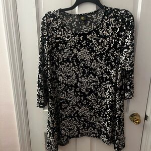 Black and cream blues, size XXL, great with leggings, polyester, only used a couple of times, like new condition