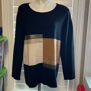 Stylish crew neck sweater. Features colorblock design. Perfect for casual wear.worn